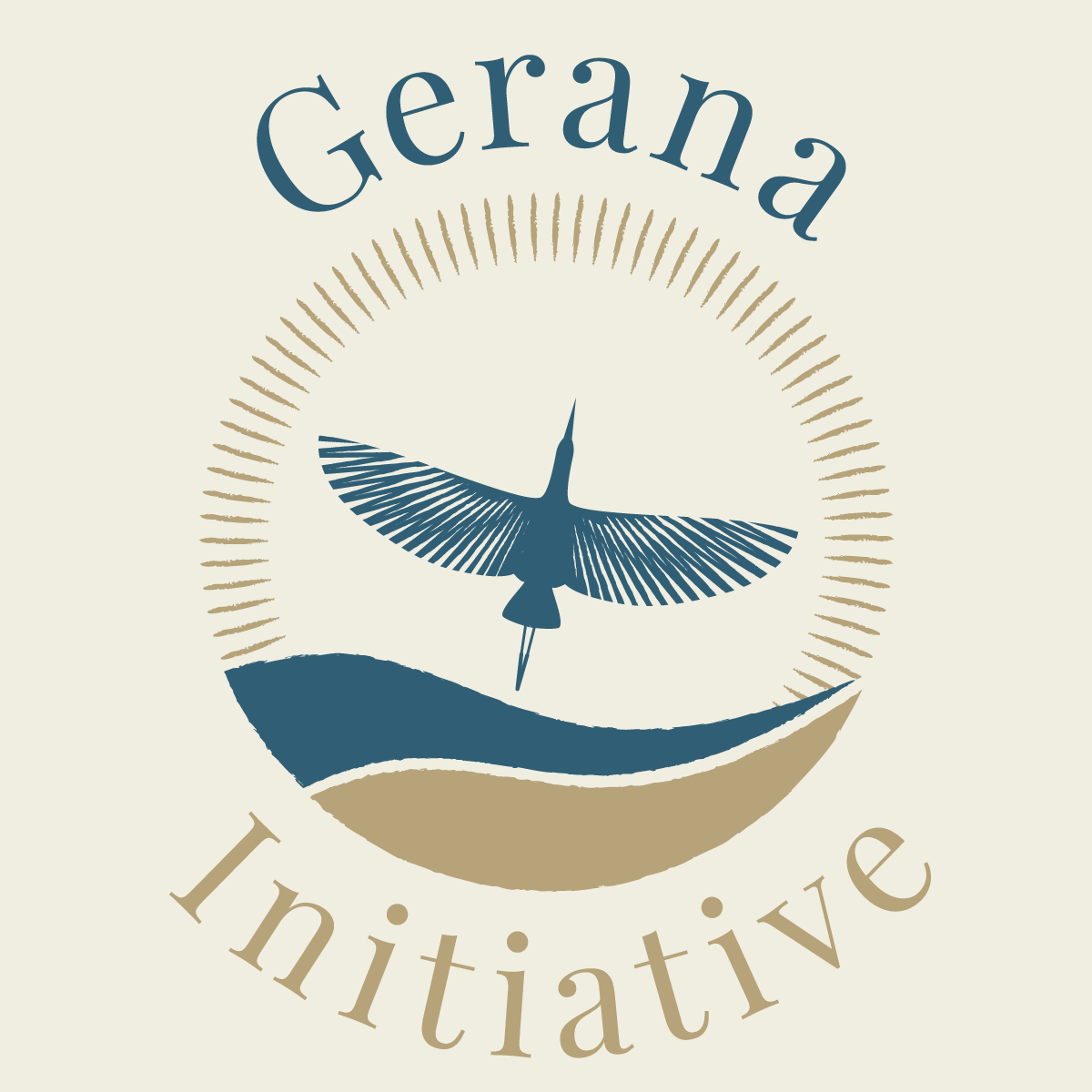 Gerana (“Geh-rah-nah”. The G is hard, like the g in “go”) is derived from ancient Greek for “crane”, which symbolises grace, longevity, and migratory wisdom. In our logo, this revered bird represents the deep interconnectedness of people, land, and water. The circle of light signifies a safe and equitable space where life can thrive.